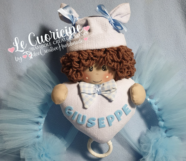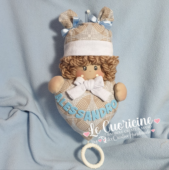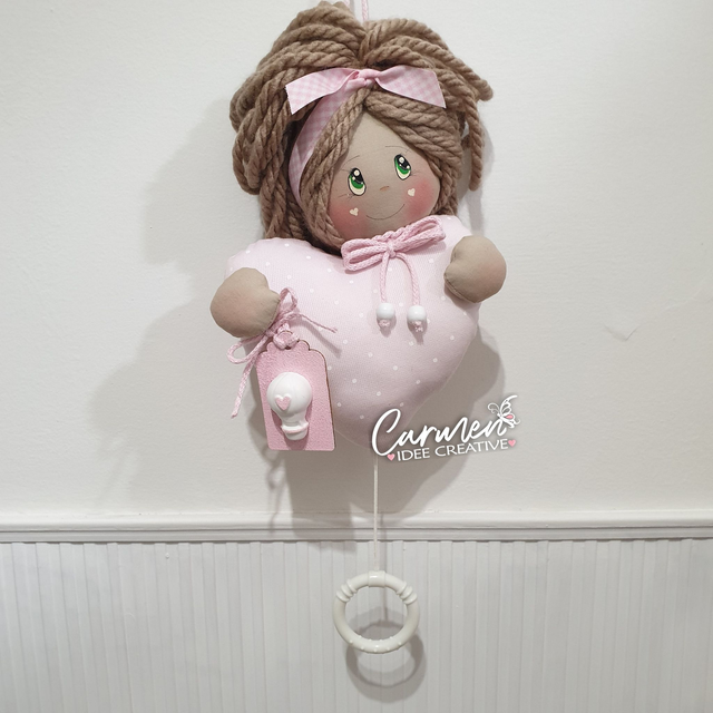 Cuore carillon in tessuto, creato a mano e disponibile su personalizzazione nella versione preferita. (30x17 cm circa)