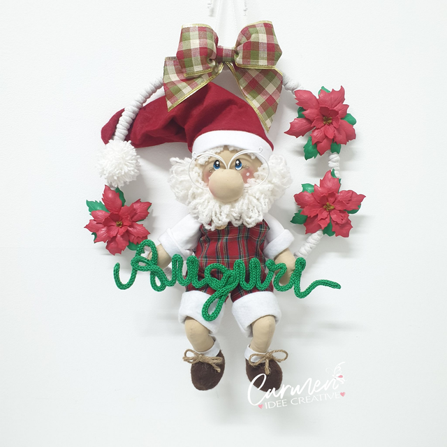 Ghirlanda con Babbo Natale, articolo realizzato a mano. Dimensioni circa 38 cm diametro.